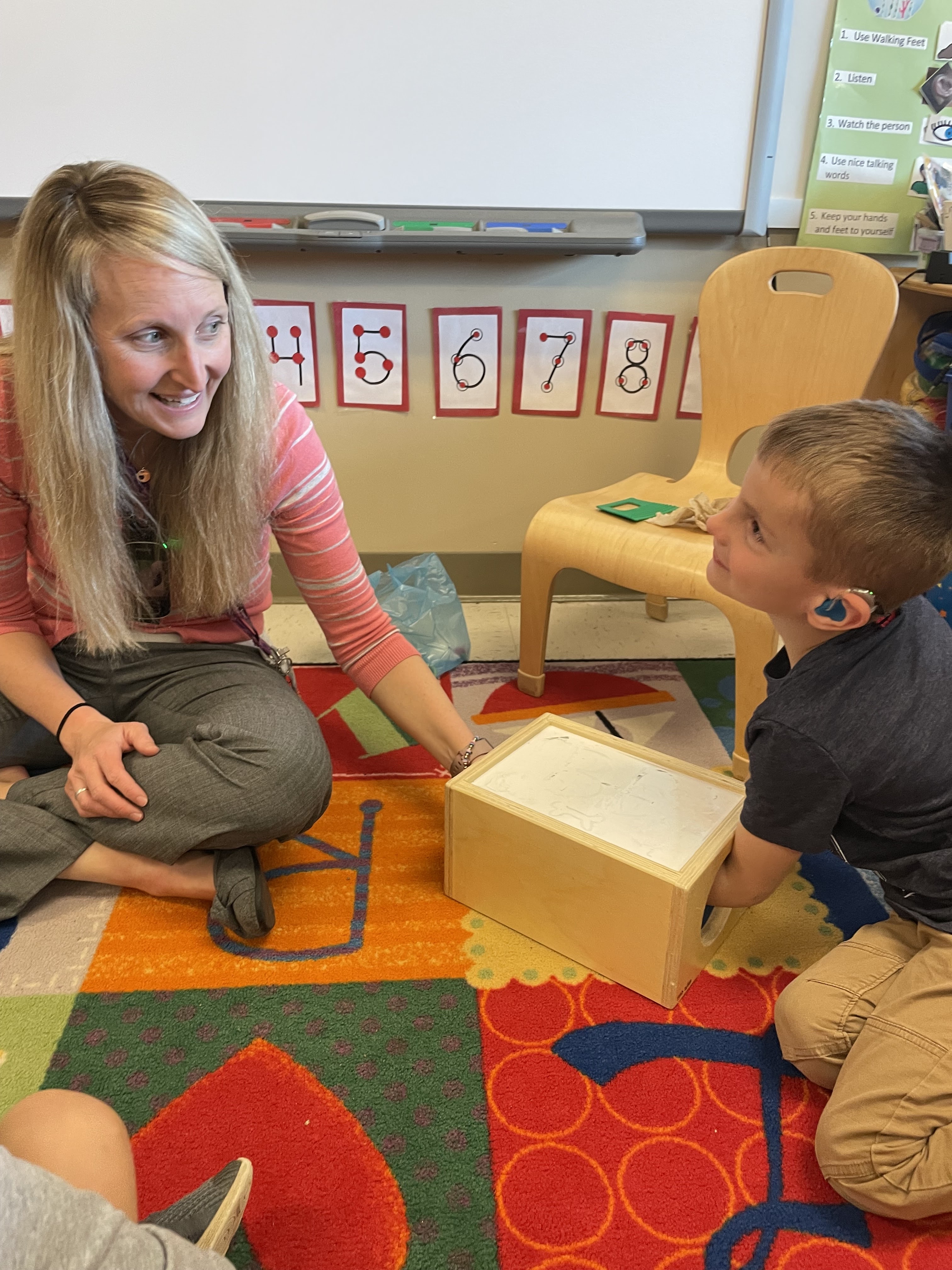 Working in pairs to find shape matches. In kindergarten, we will have different groups: large group, small group, partners, and individual. We are practicing for all of those.
